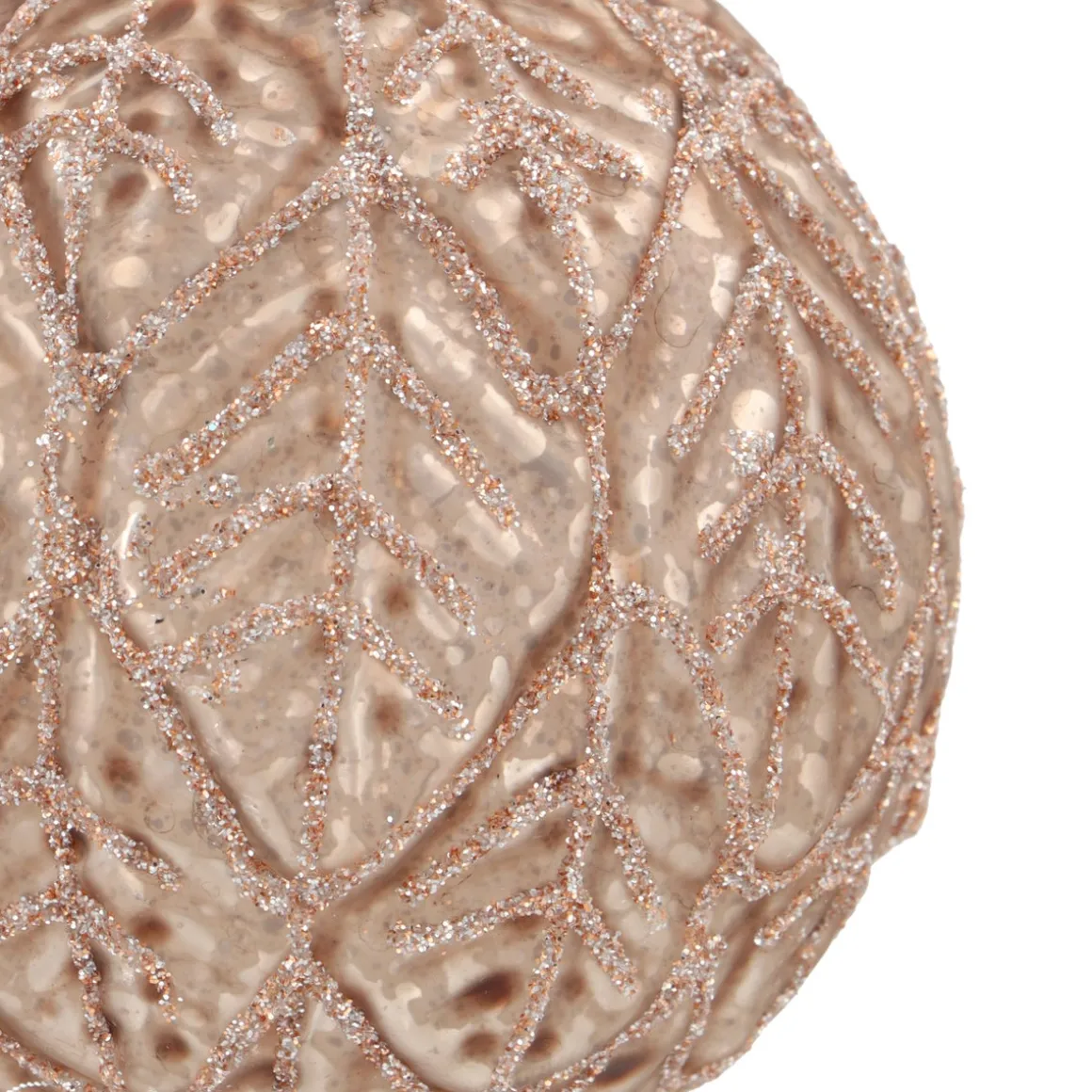Dat elegantie en nostalgie goed samen gaan, bewijst deze prachtige kerstbal! Dit glazen ornament, met semi-transparant bladmotief en glitters, zal fantastisch staan in je boom.