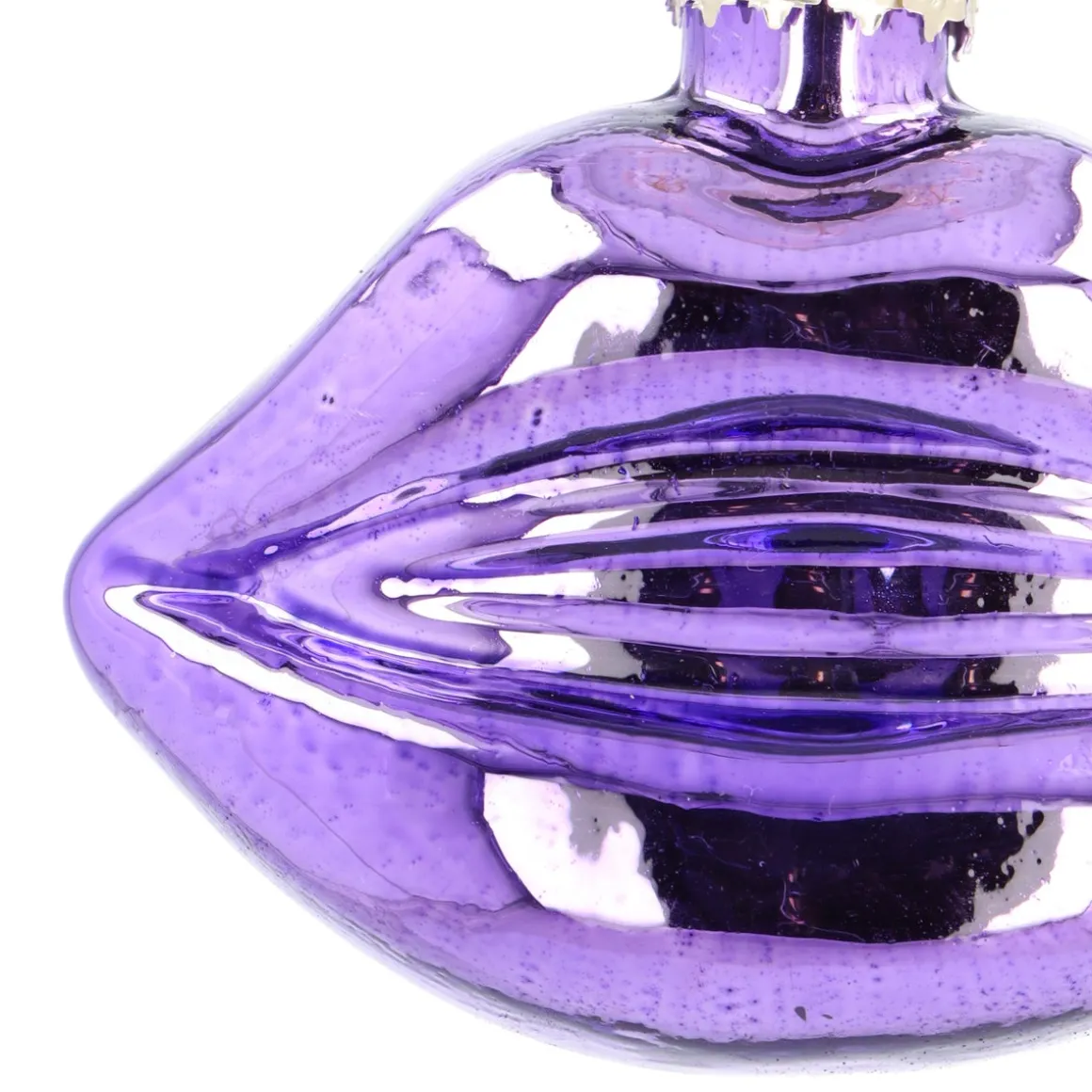 Waarom is deze paarse glazen kersthanger met lippen zo leuk?