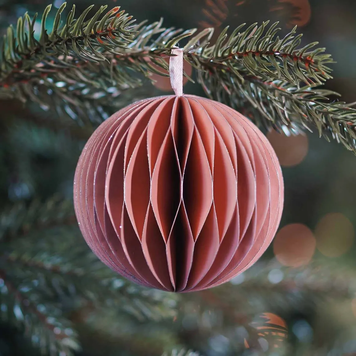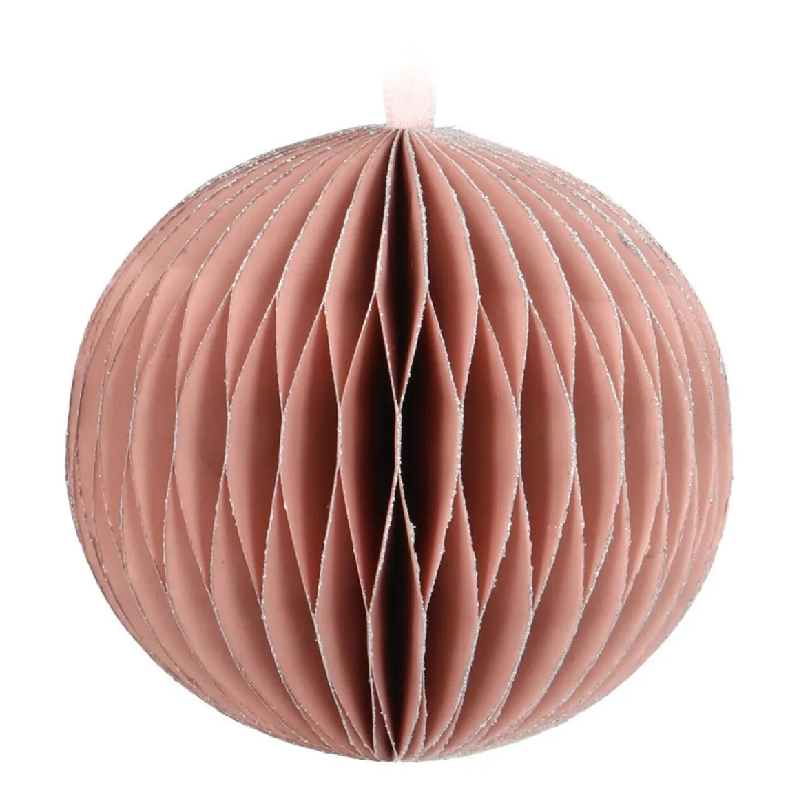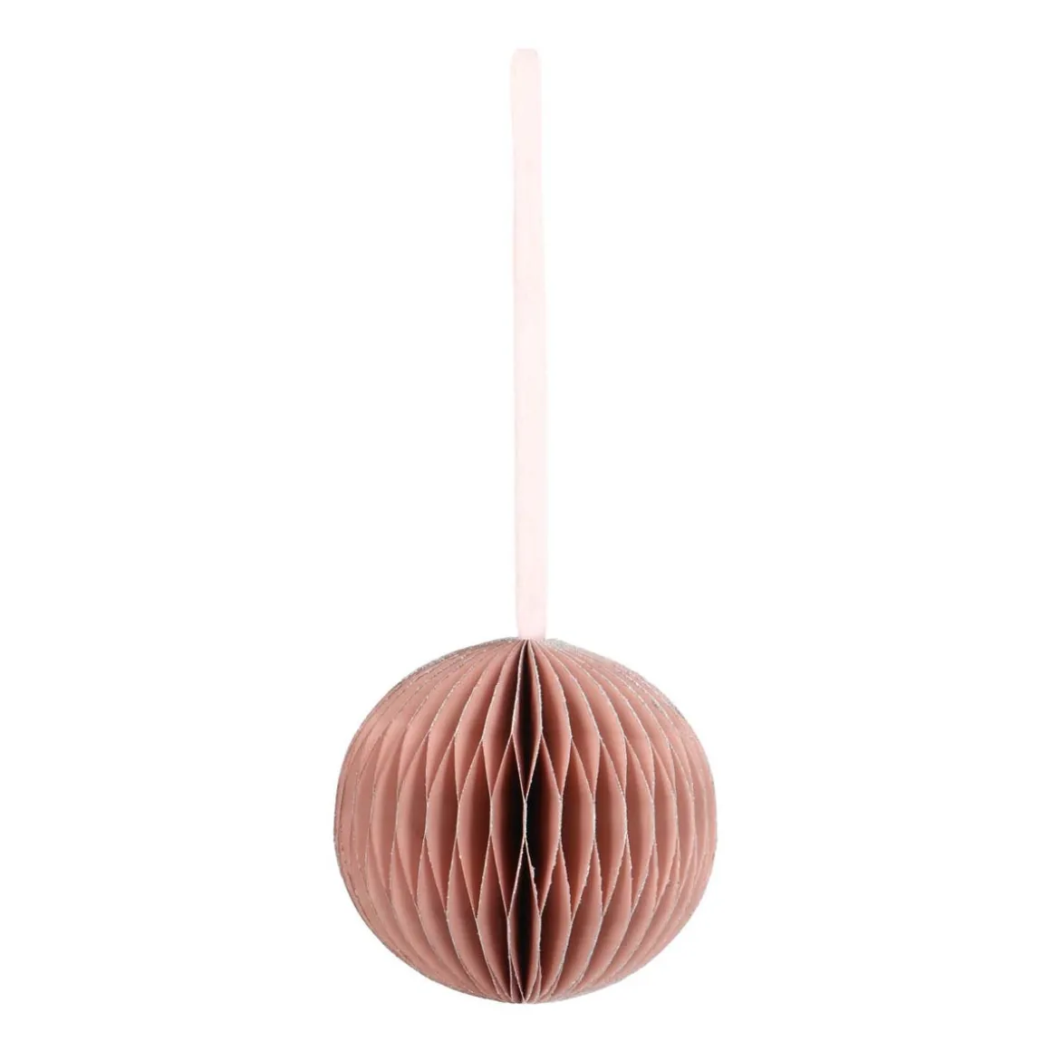 Met deze trendy papieren kerstbal wordt het zeker een vrolijk kerstfeest! De kersthanger heeft een prachtig oudroze kleur en is voorzien van een stijlvol lint om deze op te hangen. Voor een extra feestelijk tintje zijn wat subtiele glitters toegevoegd aan de uiteinden van het papier.