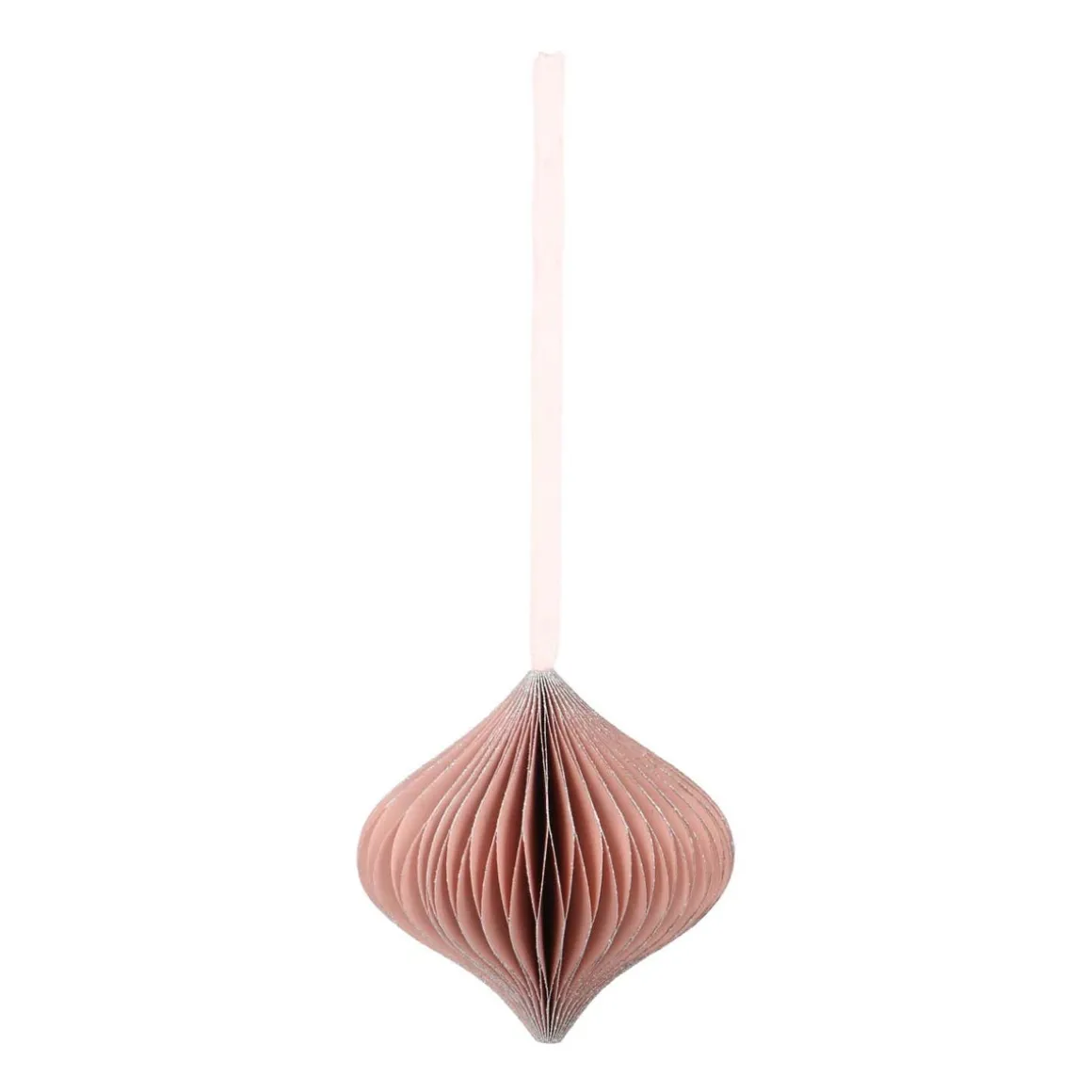 Met deze trendy ui-vormige papieren kersthanger wordt het zeker een vrolijk kerstfeest! De kersthanger heeft een prachtig oudroze kleur en is voorzien van een stijlvol lint om deze op te hangen. Voor een extra feestelijk tintje zijn wat subtiele glitters toegevoegd aan de uiteinden van het papier.