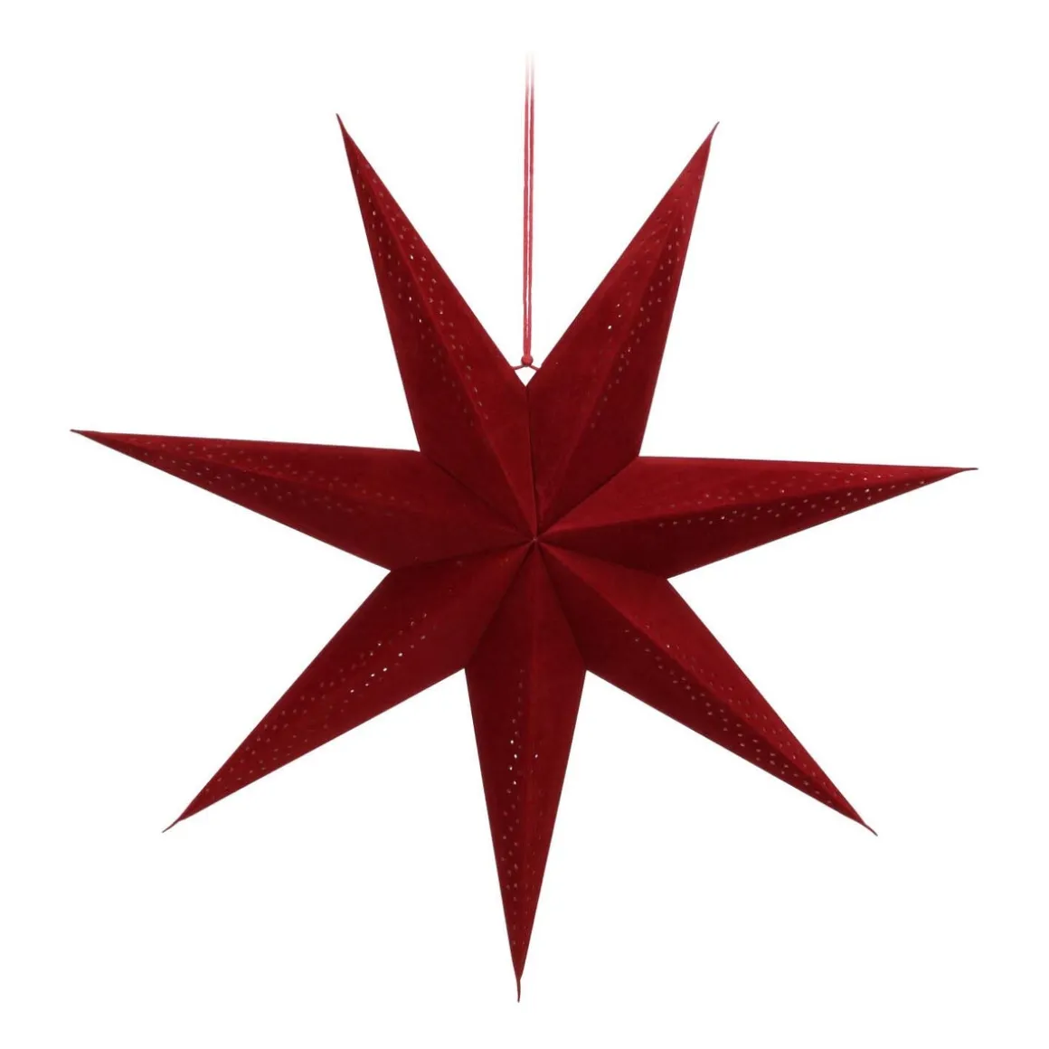 Breng je interieur in sfeervolle kerststemming met deze stijlvolle bordeauxrode 7-punts papieren kerstster van 60 cm groot. De kerstster is bedekt met een luxe stoffen velvet laag.