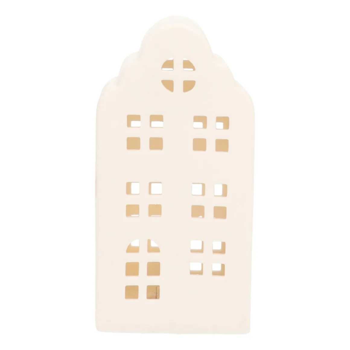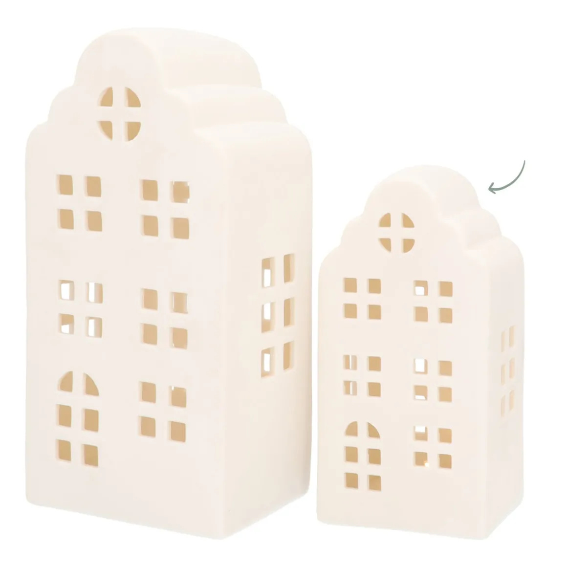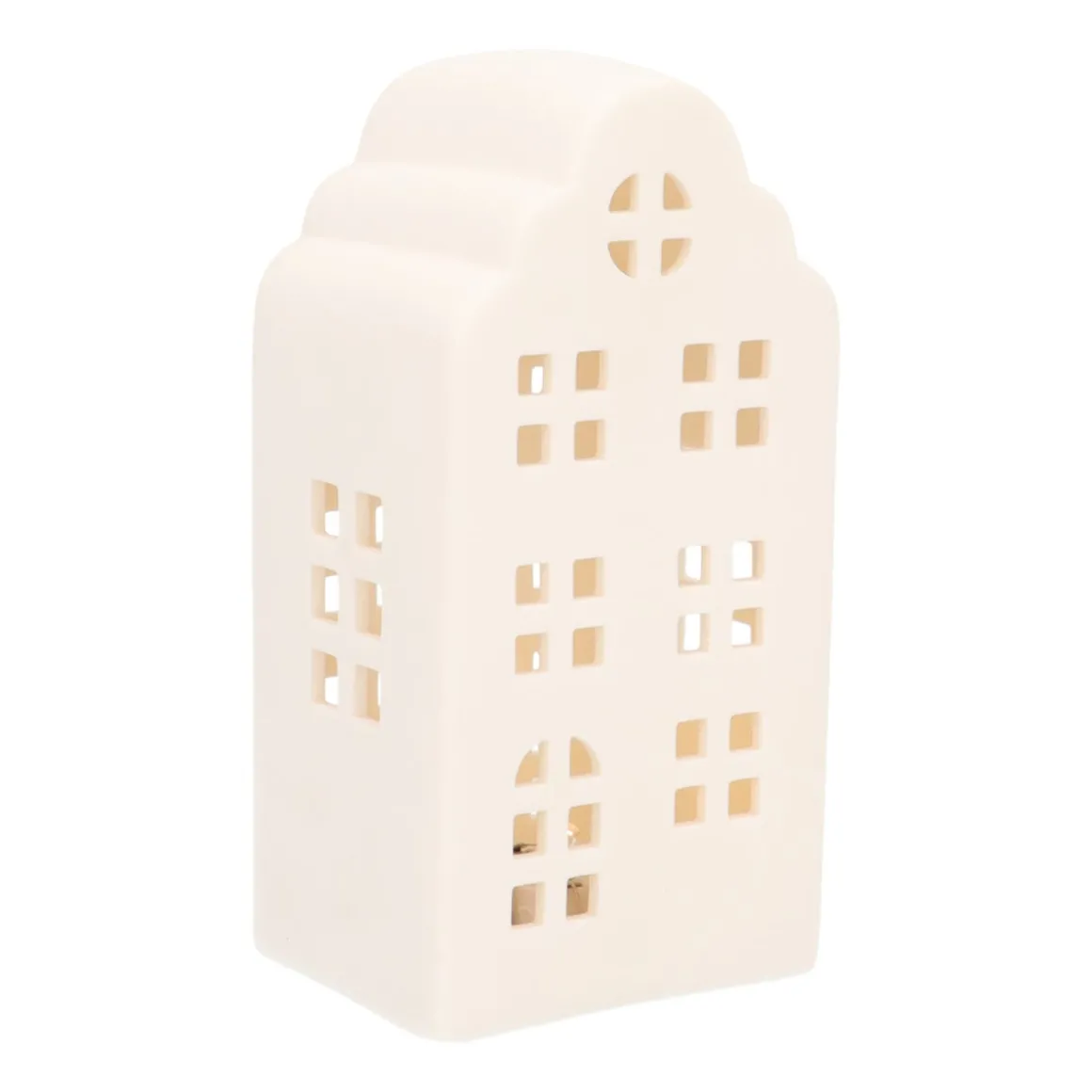 Dit 15 cm hoge Nederlandse grachtenpandje is perfect als decoratie op je vensterbank, kersttafel of dressoir. Het matwitte porselein en het minimalistische design passen in elk interieur door het neutrale design. Zodra je de warmwitte LED-lampje aanzet, schijnt het licht sfeervol door de pittoreske raampjes. Perfect voor de donkere decemberdagen!