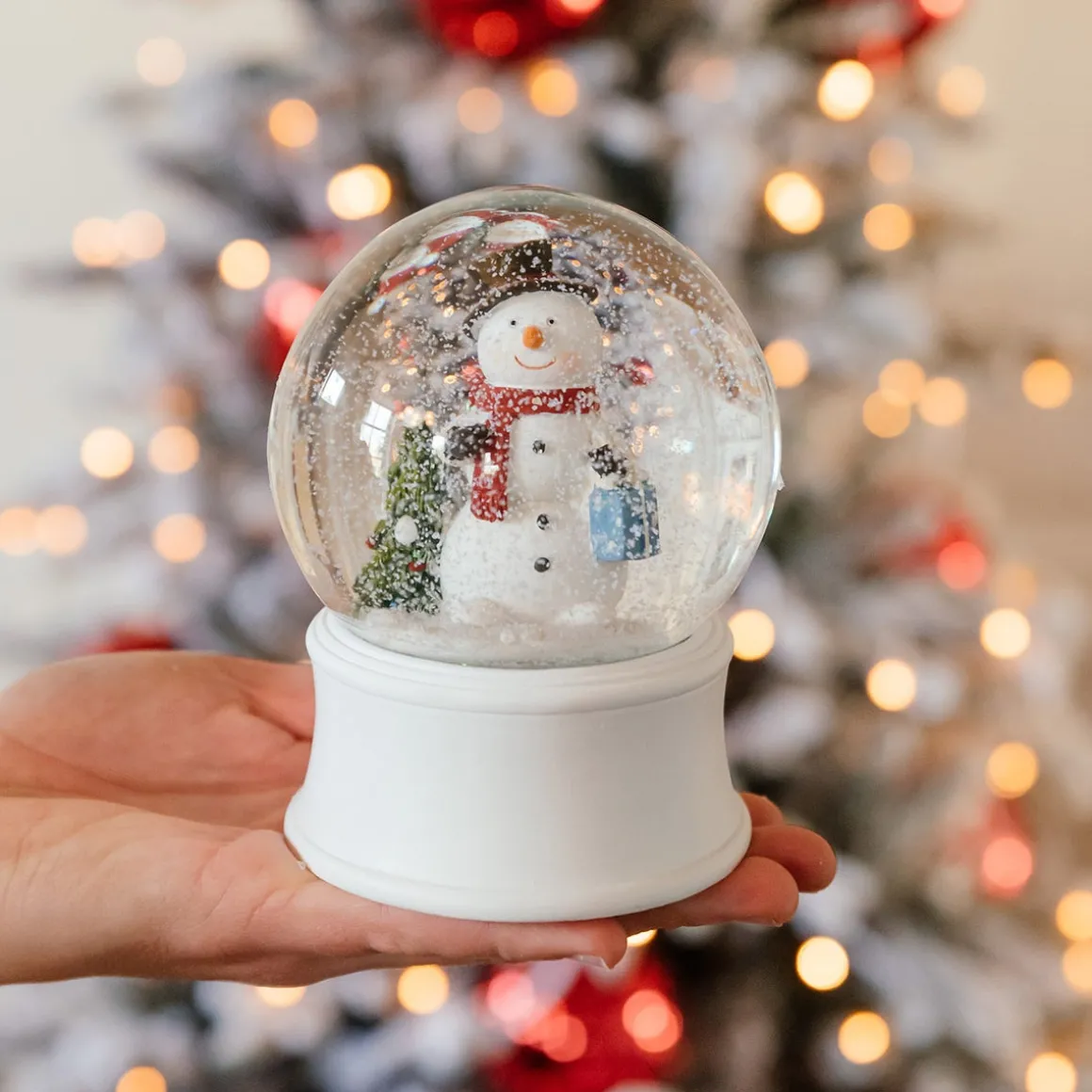 Deze prachtige sneeuwbol met muziek is van hoge kwaliteit en dat zie je aan alles. Met zijn witte basis en schattige handgedecoreerde tafereeltje van een sneeuwman met sjaal en cadeautje voegt hij zeker een vleugje magie toe aan je kerstdecoratie. Even opwinden, schudden en…. de fijne sneeuw dwarrelt met glinsterend effectlangzaam naar beneden en de vrolijke klanken van “Jingle Bells” klinken. Of je nu jong of oud bent, deze sneeuwbol met kerstmuziek zal ongetwijfeld een favoriet worden, en elk jaar weer magische herinneringen maken en oproepen.