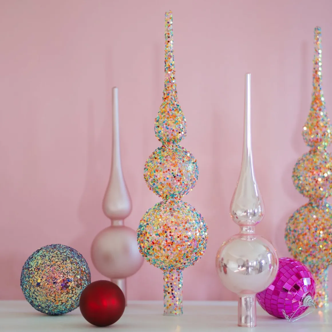 Combineer deze glitterpiek met kerstballen in dezelfde kleuren en voeg wat glinsterende slingers toe voor een boom die straalt van top tot teen. Creëer een magische hoek in je huis waar iedereen van kan genieten.