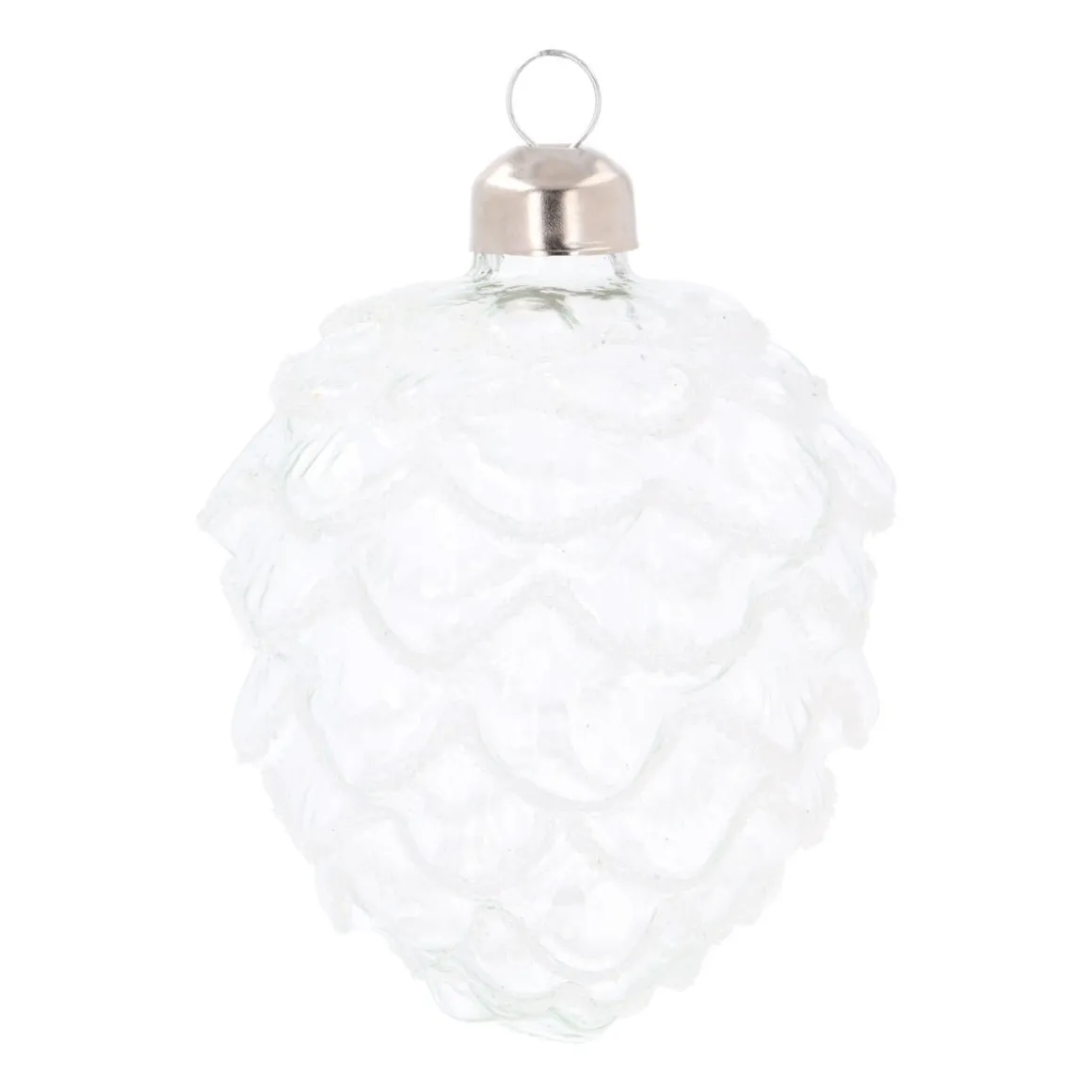 Ben je op zoek naar een winters accent je kerstboom? Deze transparante glazen dennenappel met rijp is precies wat je nodig hebt om de het ultieme decembergevoel in je huis te halen!