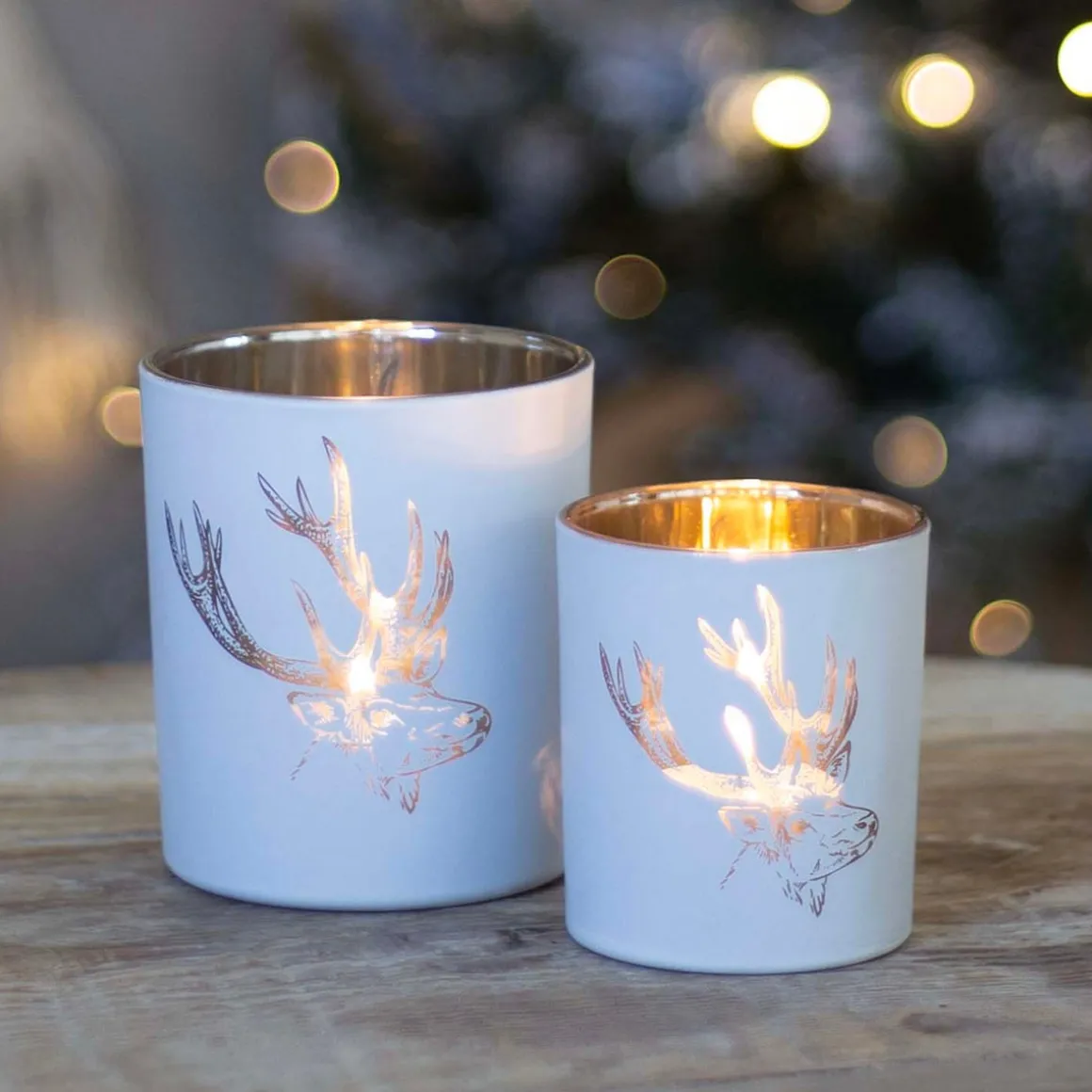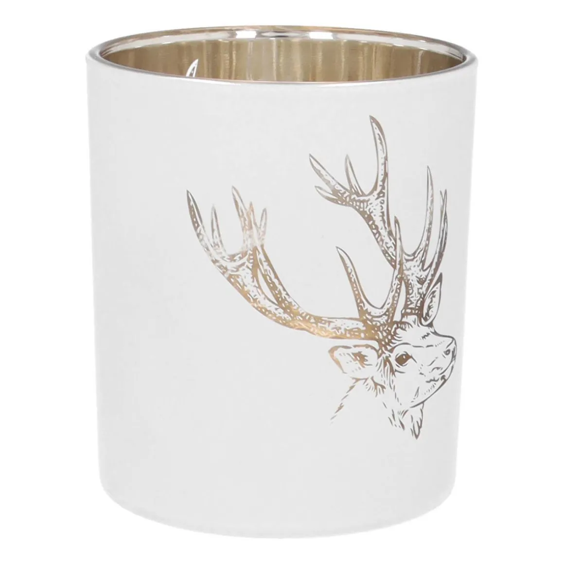 Zoek je dé perfecte sfeermaker voor Kerstmis? Deze unieke waxinelichthouder, met een hoogte van 10 cm, tovert elk hoekje om tot een feestelijk tafereel. De buitenzijde straalt in zuiver wit, terwijl de binnenzijde verrast met een warme gouden gloed. Het doorzichtige patroon van een hertenkop zorgt voor een betoverend lichtspel. Ideaal voor een sfeervolle kerstavond. Ook verkrijgbaar in 8 cm.