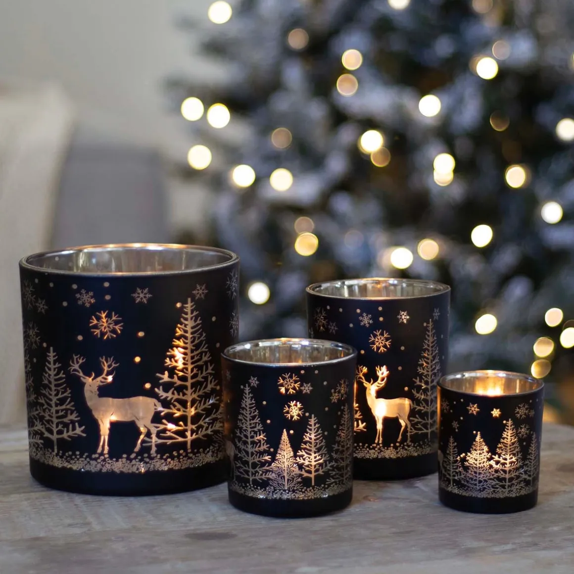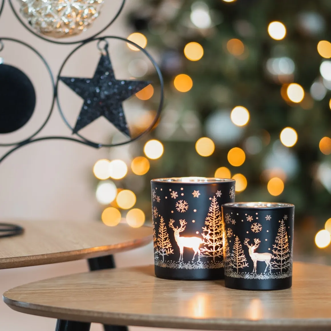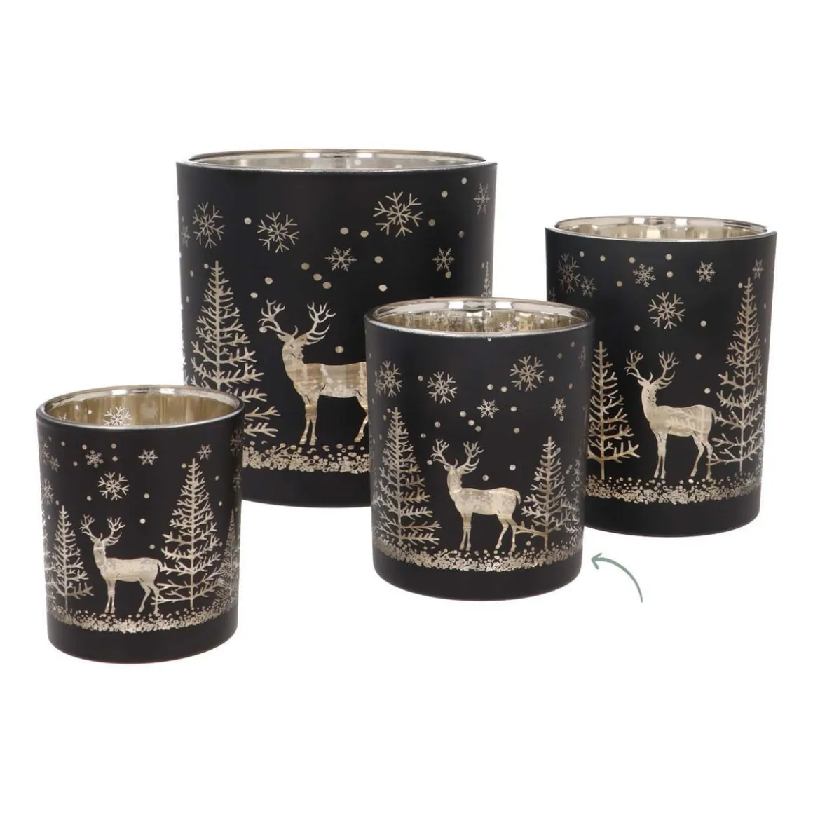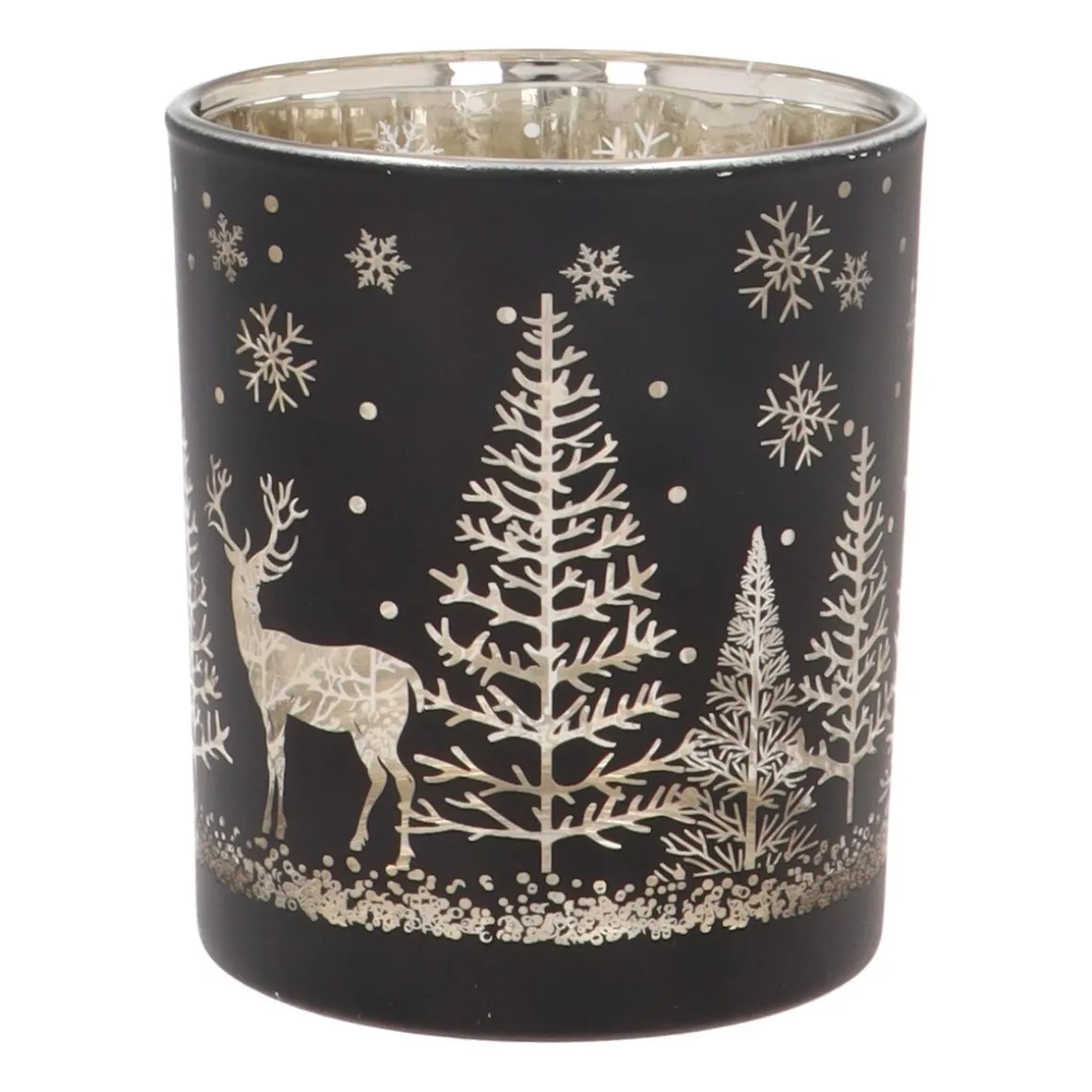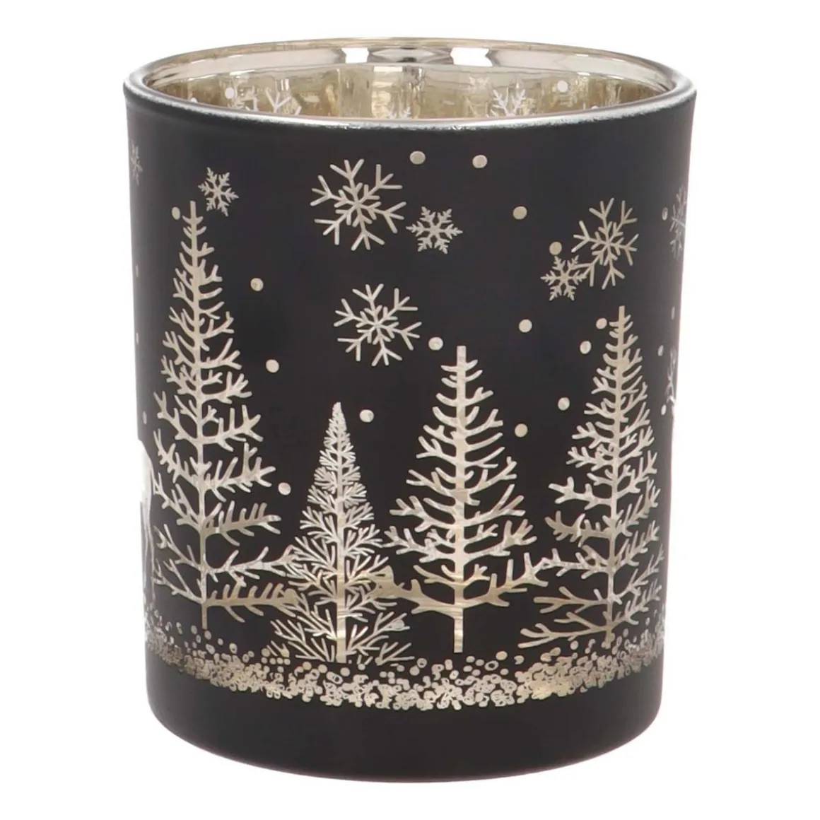 Op zoek naar een sfeervol accent in je interieur? Laat je betoveren door onze kerst theelichthouder met een tafereeltje van een rendier in het kerstbos. Deze waxinelichthouder van 10 cm is ideaal om direct een kerstsfeer in je interieur te scheppen. Aan de binnenkant is deze waxinelichthouder goud, de buitenkant is stijlvol zwart en het tafereeltje is doorzichtig wat een magisch effect geeft als je hier een waxinelichtje in zet.