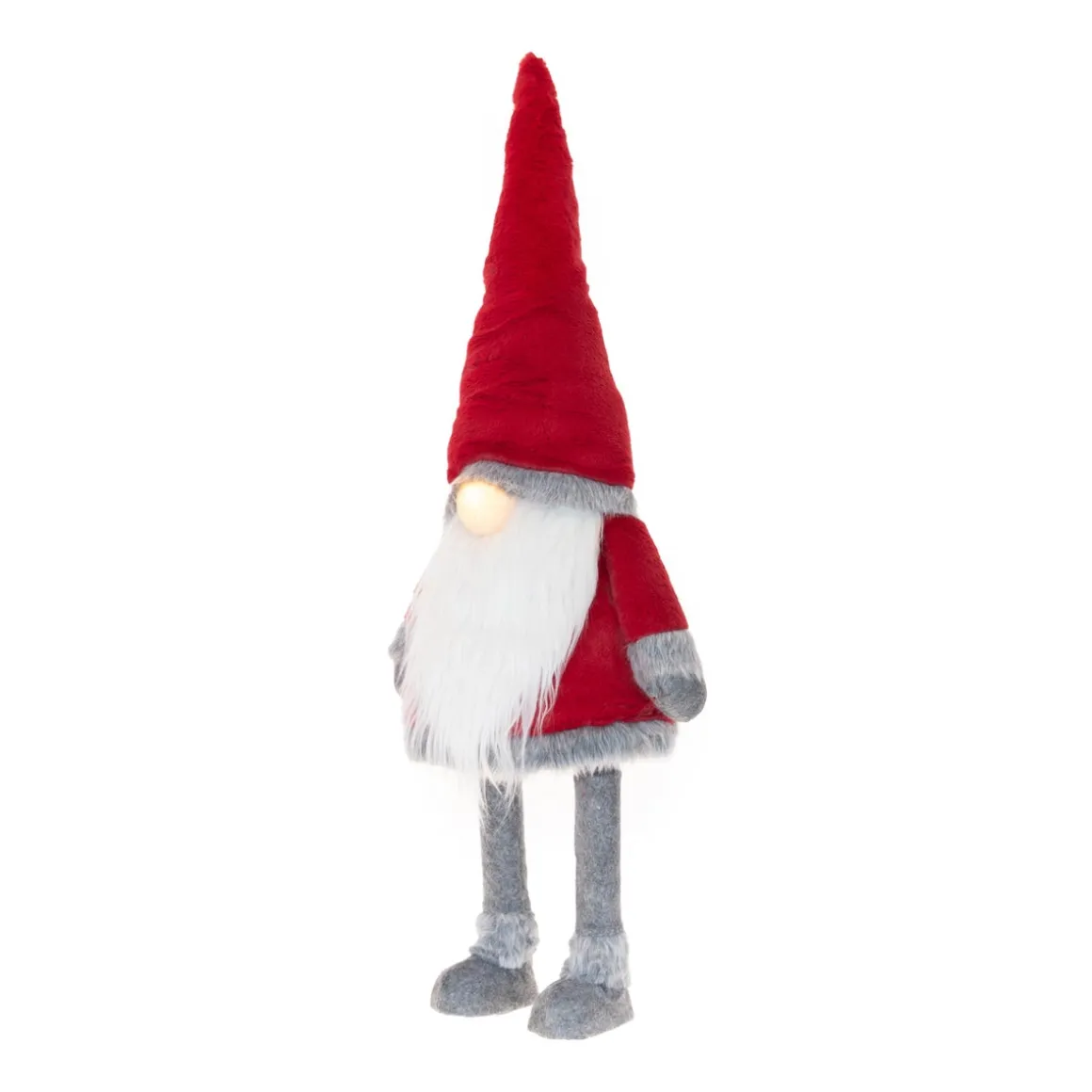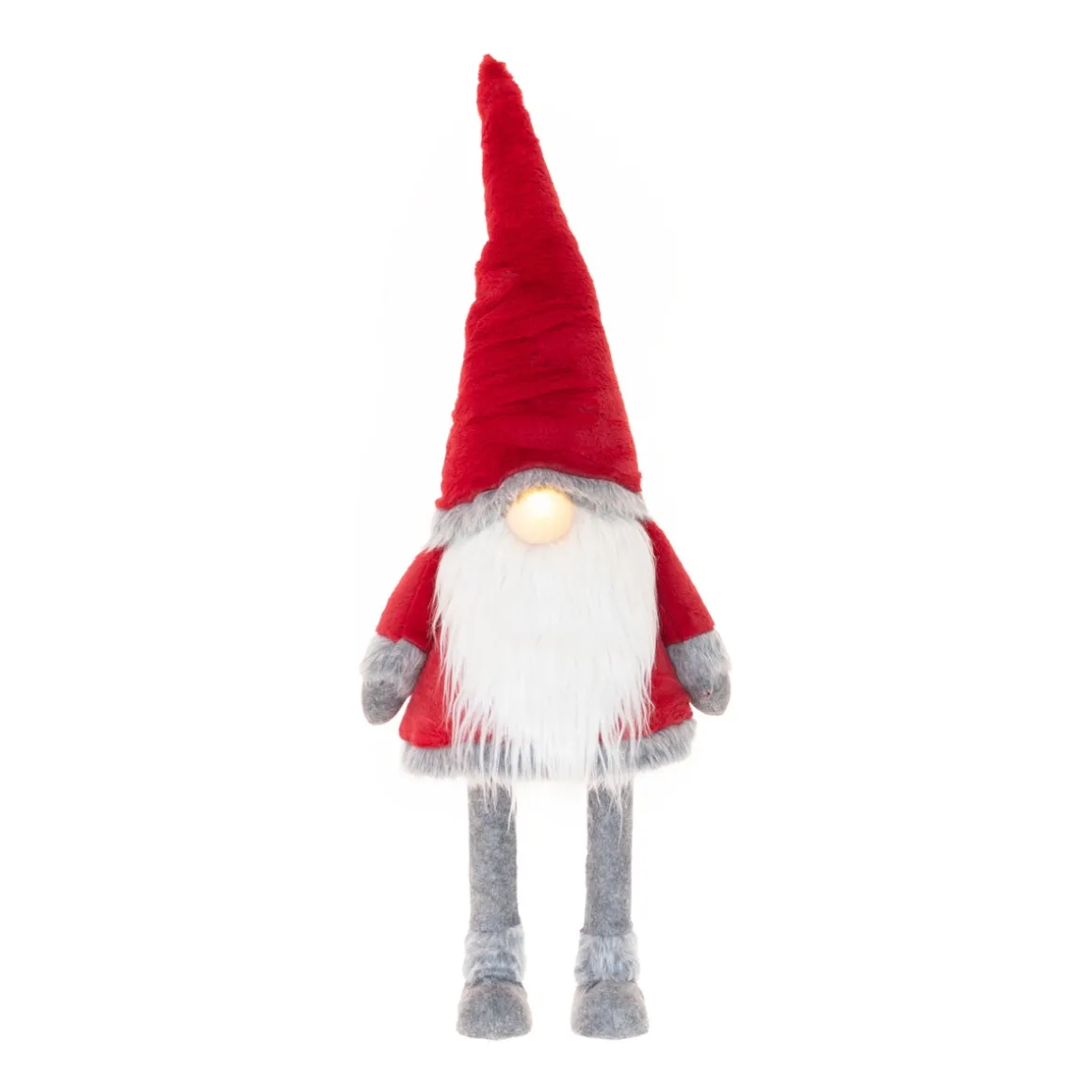 Deze stoffen kabouter is niet alleen leuk om naar te kijken. Hij heeft namelijk een ingebouwd veersysteem, waardoor hij zachtjes beweegt als je hem aantikt. De rode gnoom heeft kenmerkende eigenschappen zoals een lange puntmuts en dikke witte baard voor een directe kerstsfeer. En dat is nog niet alles! Zijn neus heeft een ingebouwd LED-lampje voor een extra gezellige sfeer. Wie wil dat nou niet?