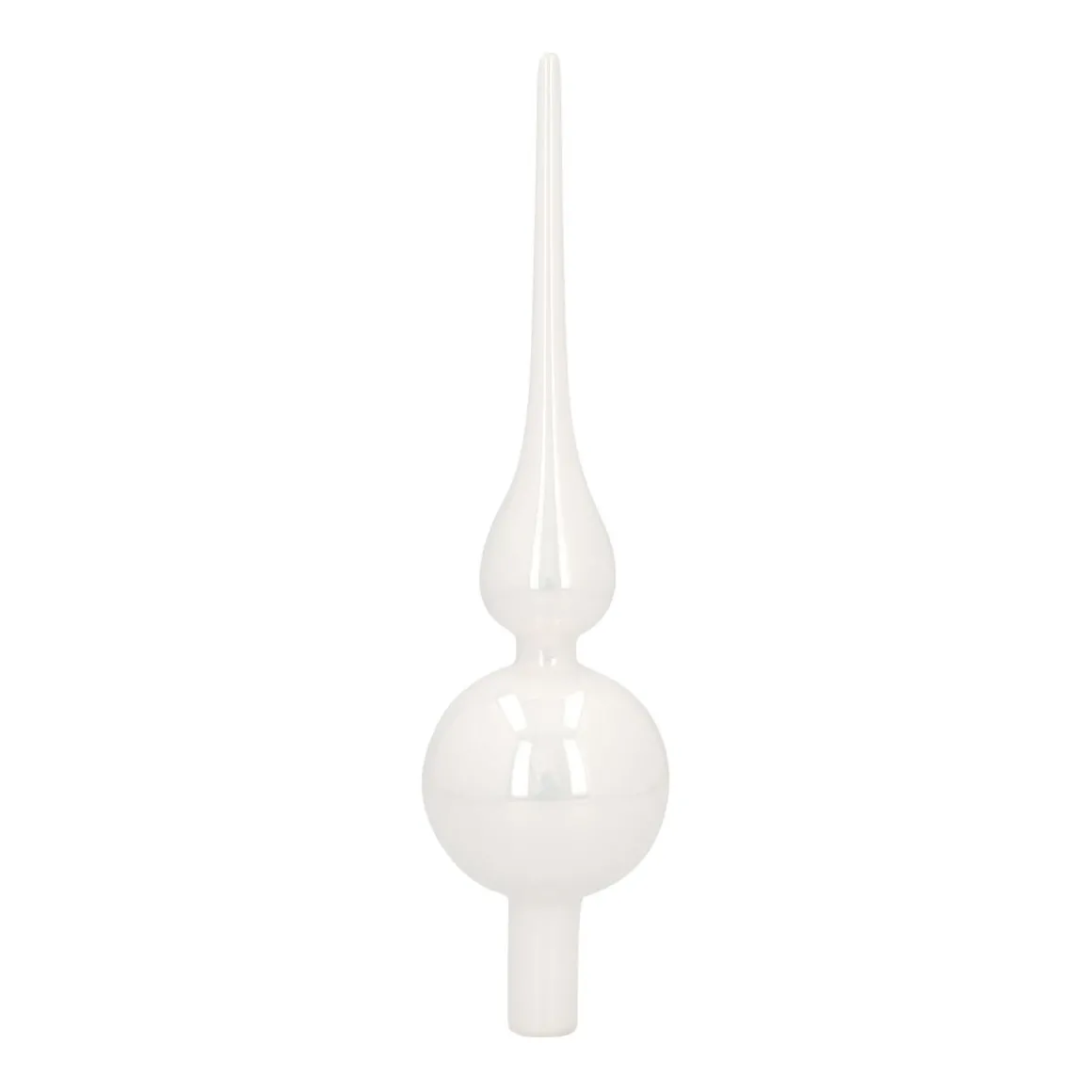 Een kerstboom maak je compleet met een piek. Deze glazen piek in glanzend wit maakt van december een elegant feest! Deze stevige witte glazen piek van 27 cm heeft een tijdloos design en een kenmerkende klassieke vorm. De glanzende witte afwerking past bij zowel romantische als traditionele kerstdecoraties. Bevestig deze piek als finishing touch bovenin je kerstboom.