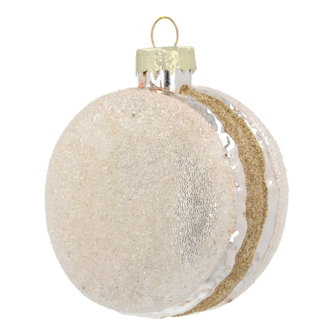Een prachtige glazen macaron hanger in zilver, die wil je vast in je kerstboom hebben dit jaar! Met zijn subtiele suikercoating en gouden touwtje is de macaron extra feestelijk. Perfect voor de liefhebbers van fijne lekkernijen. Combineer deze zilveren hanger van 5 cm met de macarons in andere kleuren zoals goud, paars, roze of rood voor een kleurrijk en feestelijk geheel. Je kunt de macaron in de boom hangen, maar hij is natuurlijk ook harstikke leuk in een krans of guirlande. Of leg een paar macarons in een schaal met wat andere kerstitems, dat staat meteen sfeervol op tafel of op een dressoir.