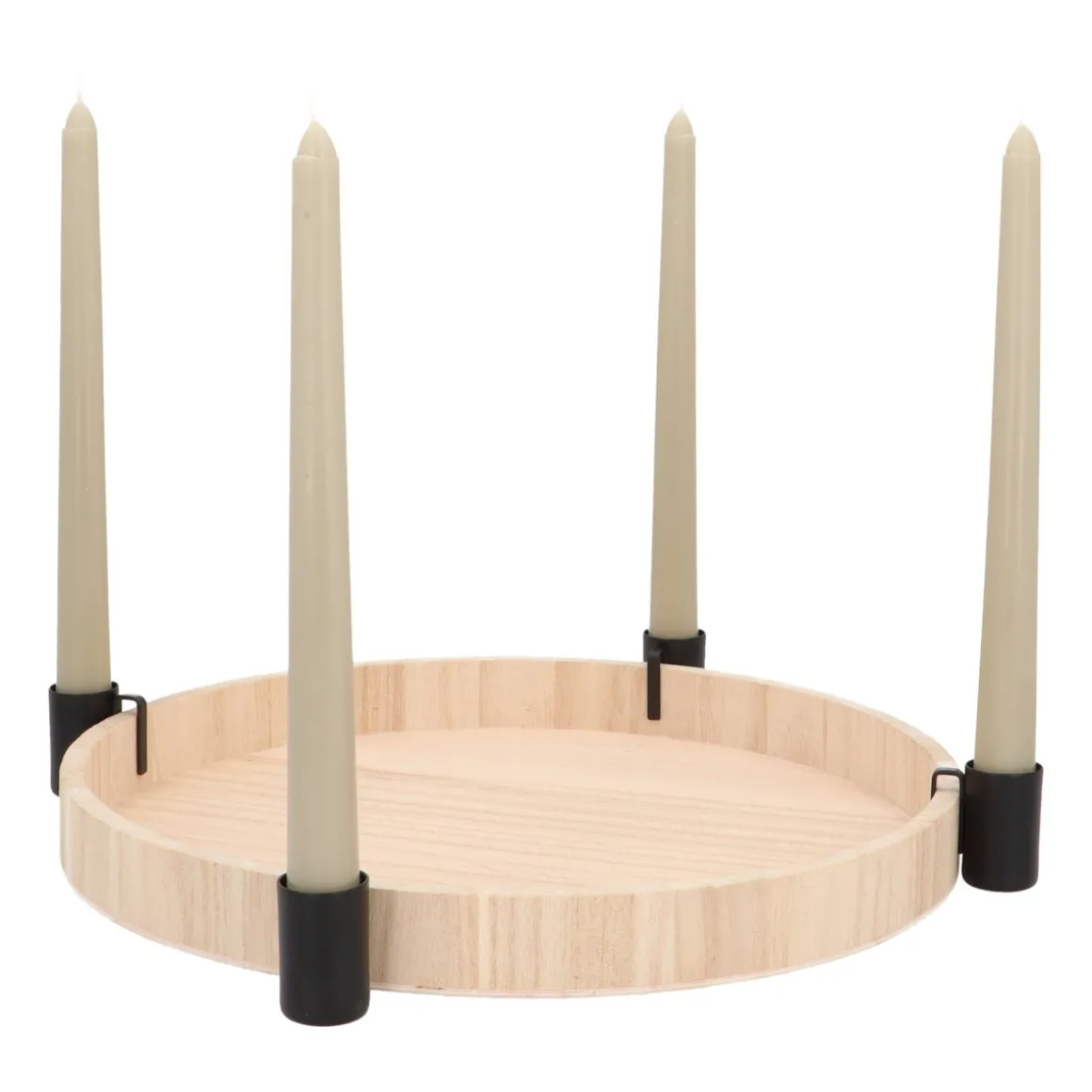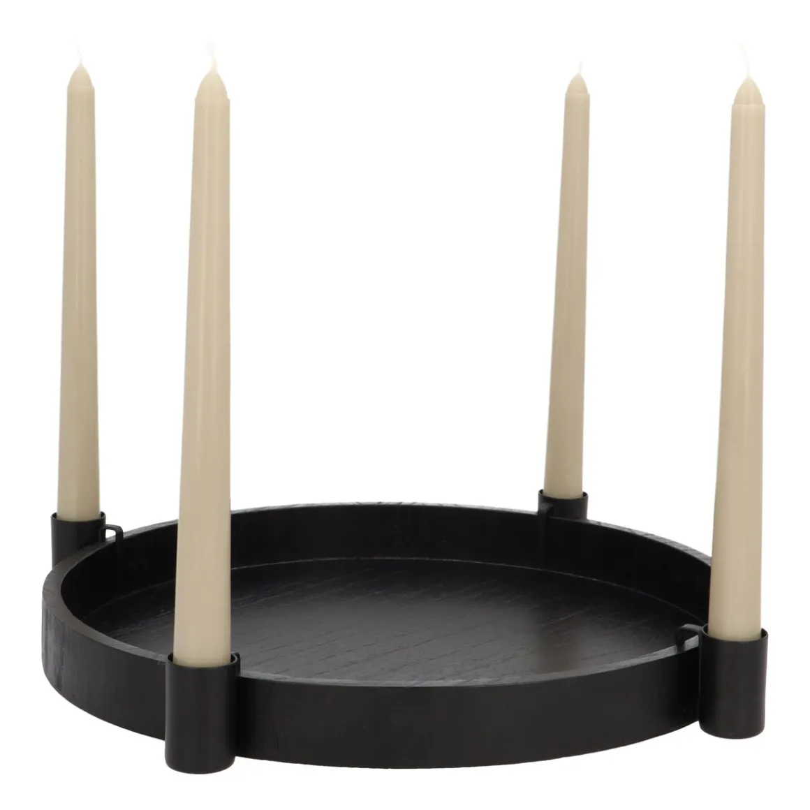 Deze set van 4 zwarte kaarsenhouders is speciaal ontworpen voor gebruik op de dienbladen uit onze webshop. Klem de metalen houders eenvoudig om de rand van het dienblad voor een elegante presentatie. Mooi voor op tafel of elke andere plek in huis. Ze zijn geschikt voor een standaard formaat van 23 mm, waardoor je bijna alle dinerkaarsen kan gebruiken.